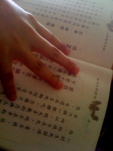 Fingers on a Dharma text
