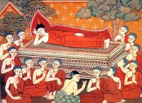 Then the Blessed One spoke to the Venerable Ananda, saying: “It may come to pass, Ananda, that someone will cause remorse to Cunda the metalworker, saying: ‘It is no gain to you, friend Cunda, but a loss, that it was from you the Tathagata took his last alms meal, and then came to his end.’ Then, Ananda, the remorse of Cunda should be dispelled after this manner: ‘It is a gain to you, friend Cunda, a blessing that the Tathagata took his last alms meal from you, and then came to his end. For, friend, face to face with the Blessed One I have heard and learned: “There are two offerings of food which are of equal fruition, of equal outcome, exceeding in grandeur the fruition and result of any other offerings of food. Which two? The one partaken of by the Tathagata before becoming fully enlightened in unsurpassed, supreme Enlightenment; and the one partaken of by the Tathagata before passing into the state of Nibbana in which no element of clinging remains. By his deed the worthy Cunda has accumulated merit which makes for long life, beauty, well being, glory, heavenly rebirth, and sovereignty.”‘ Thus, Ananda, the remorse of Cunda the metalworker should be dispelled.”