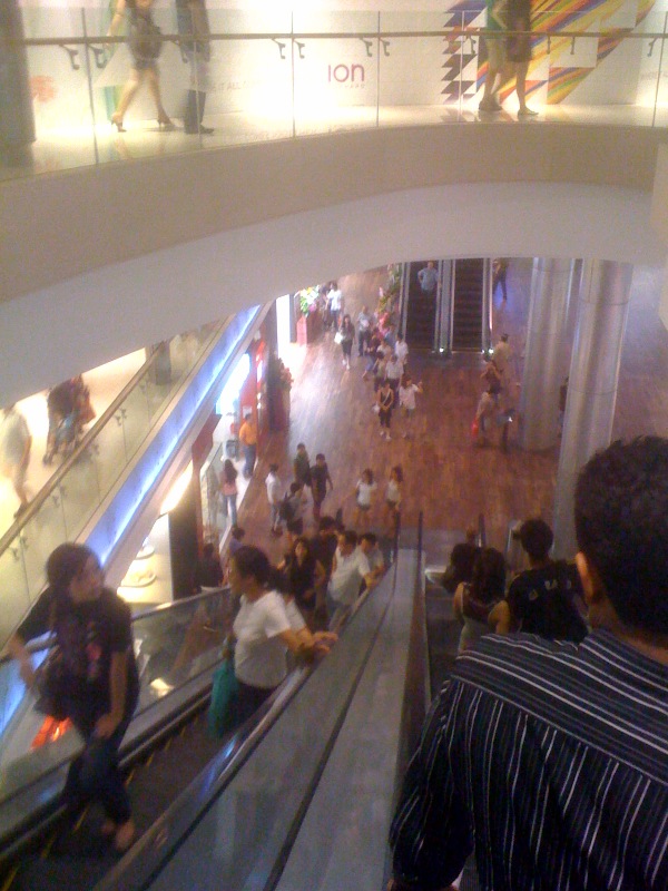 Layers upon layers of shops at the new Ion Orchard mall. Even the American guy behind exclaimed – ‘Look at this shi*t!’ Quite an overwhelming sight indeed, though this is not the only mega mall I’ve seen. Maybe it’s particularly mind-blowing precisely because it’s yet another one – of many! The sight of this many shoppers and shops almost sent a shiver down my spine. Insatiable consumerism is hereby further institutionalised in our age of over-consumption – at the cost of more planetary resources expended.