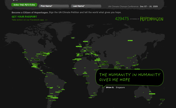 Help lead the leaders by visiting hopenhagen.org today. Sign the petition. Become a citizen of Hopenhagen. Fuel the movement. More important, pass on the story of Hopenhagen to your friends and family. Encourage everyone you can to get involved and sign the petition. Because the more of us who do, the more our leaders will recognize the world is serious about change. Let’s turn Copenhagen into Hopenhagen.