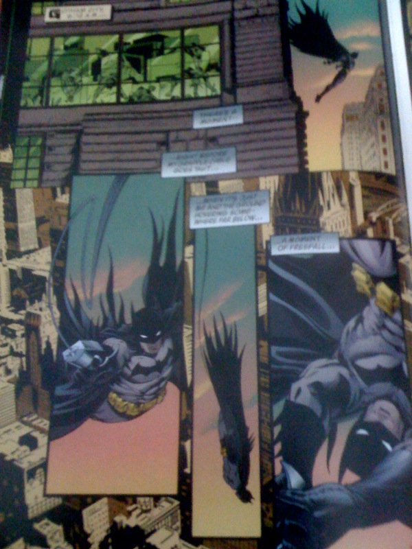 Batman manages to enjoy brief respites in mid air despite the tedium of his continual mission – a moment of suspension in ‘nothingness’, when all is let go off, including his attachment to justice and aversion to crime. Isn’t this the true meaning of rest – that is both physical and spiritual? There is also rest that comes from knowing a worthy hard night’s work is done. True contentment must arise from having done one’s best; not from doing nothing. Later, he tells Green Lantern this –