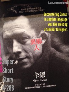 Stranger: Super Short Story #286 Shen Shián December 31, 2013 Leave a Comment on Stranger: Super Short Story #286 Posted in Stories Super Short Story #286: Stranger Encountering Camus in another language was like meeting a familiar foreigner.