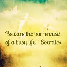 Socrates warned to ‘Beware the barrenness of a busy life.’ Indeed, a busy social and worldly life might mean a lack of personal spiritual life. But beware too, the barrenness of an idle life with no clear aim or betterment disguised as an endless retreat.