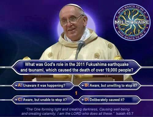 [E] However, there is no omniscient, omnibenevolent and omnipotent creator God since he is very cruel too.