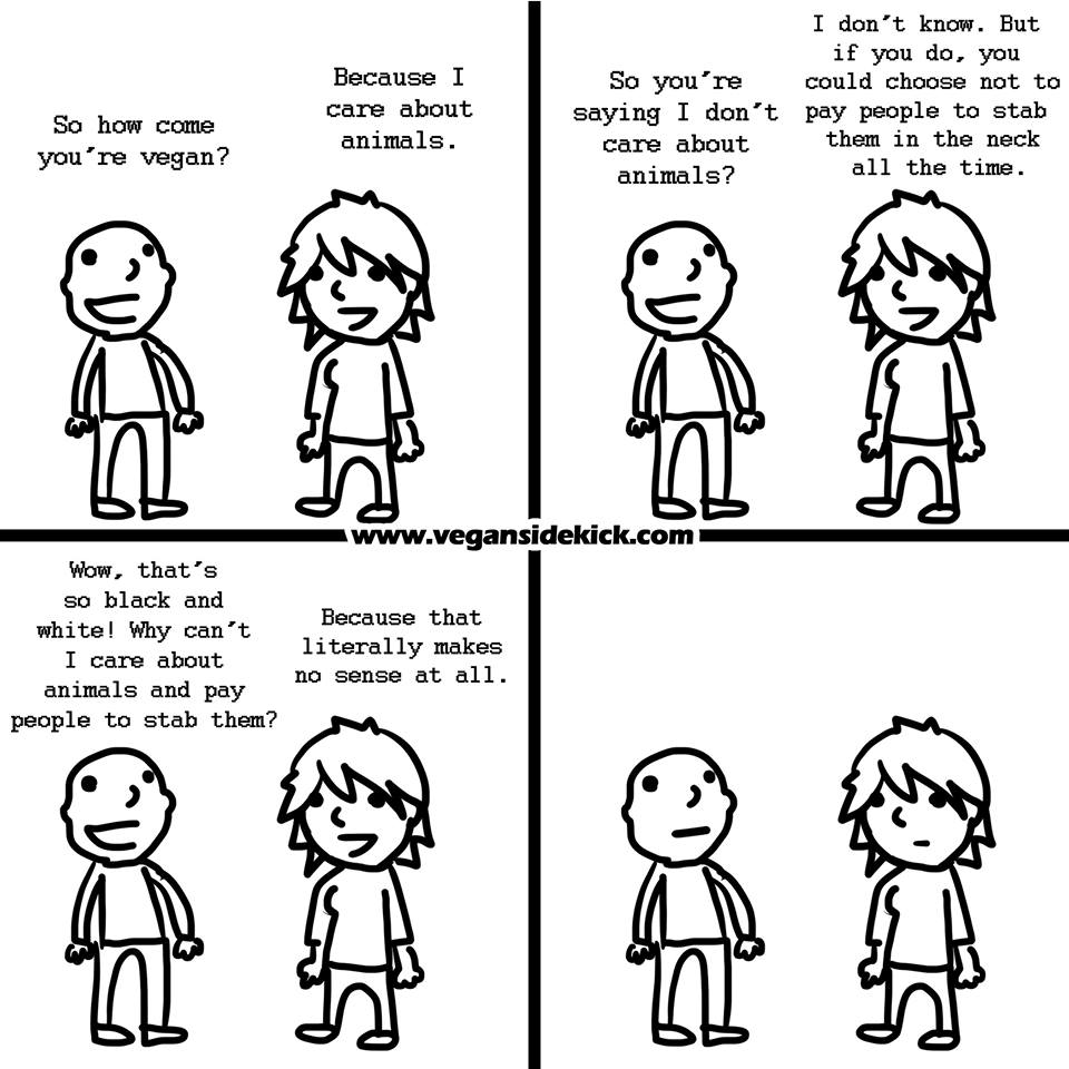 Sara: Yeah… Why pick only one side? Surely, he can go vege when with them too?