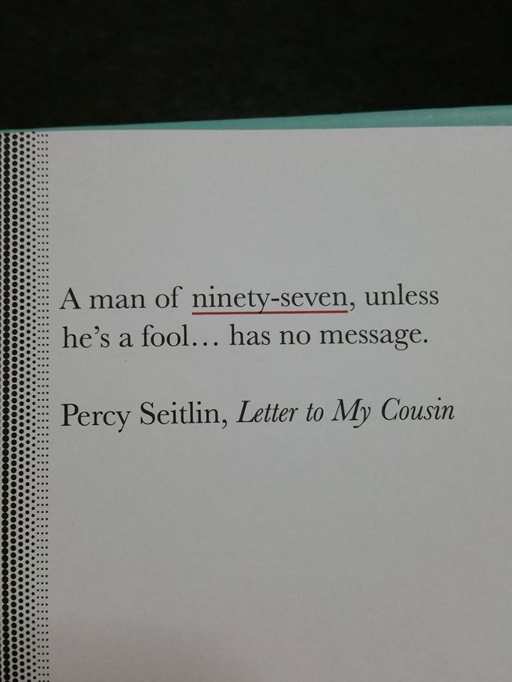 Anyone of any age, unless yet to learn anything, or refuses to reflect… has no message to share. May we all learn and share the most significant messages on life before we run out of life. #ss100YearsReview