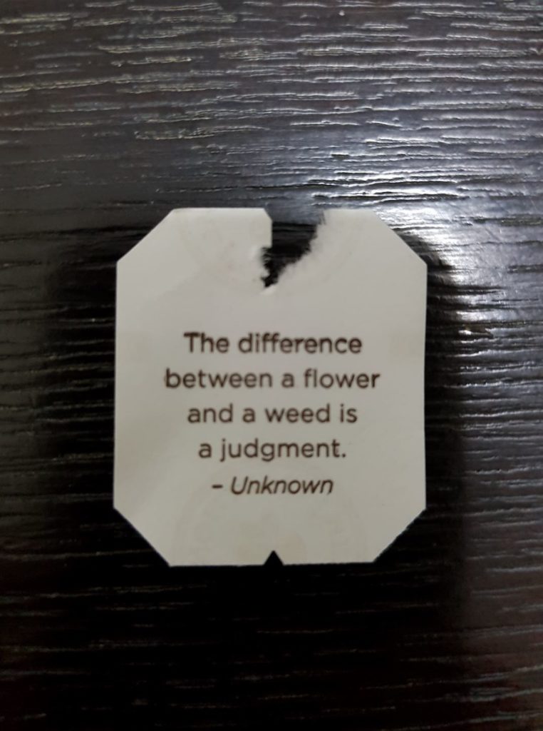 Flowering Weed? Shen Shián June 11, 2017 Leave a Comment on Flowering Weed? Posted in Quotes Flowers become ‘weeds’ when not grown as wished. Weeds become ‘flowers’ when grown as wished. Flowers wither to become weeds that rot to fertilise and become flowers too.