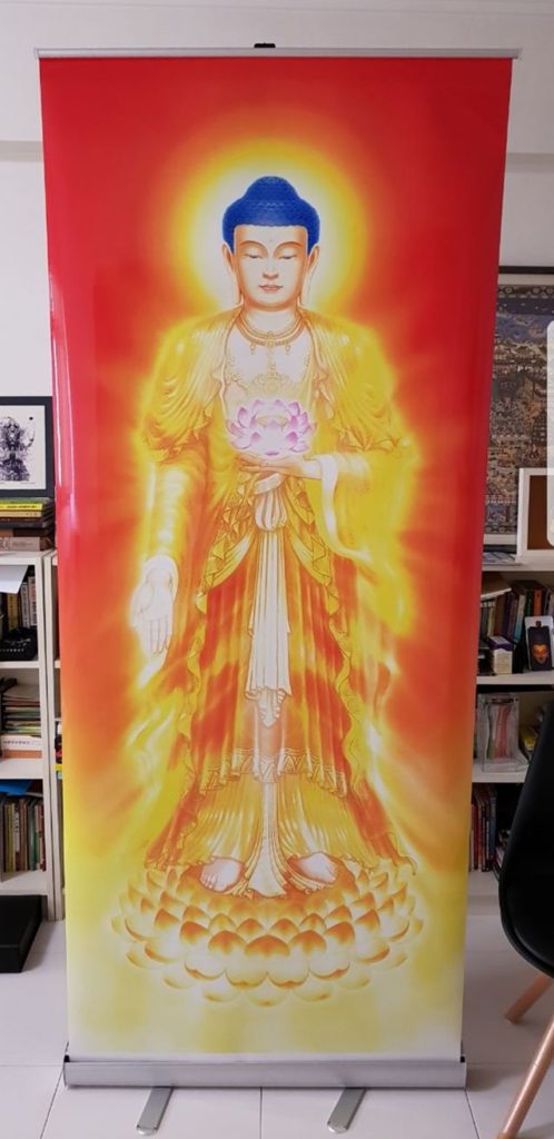 Life-sized Amituofo! Shen Shián June 6, 2017 Leave a Comment on Life-sized Amituofo! Posted in PhotojournalLife-sized Amituofo image to be used for a coming Nianfo retreat. Namo Amituofo!阿弥陀接引图! Picture of Amituofo’s receiving and guiding to Pure Land!