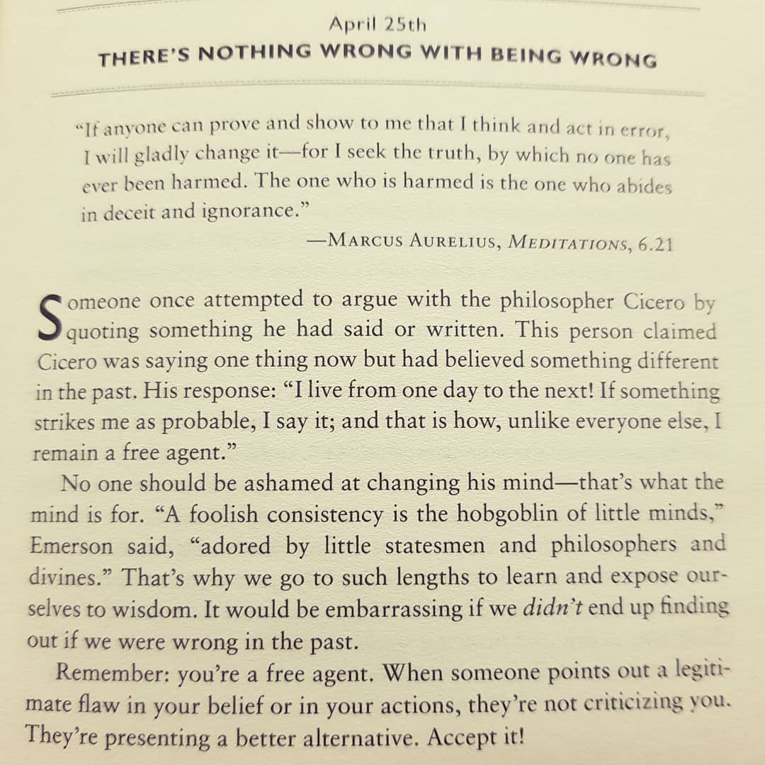 Wrong: Dharmagram #115 moonpointer May 30, 2018 Leave a Comment on Wrong: Dharmagram #115 Posted in Books Wrong: Dharmagram #115 The only thing wrong with being wrong is to neither admit so, nor to right the wrong. (Page from ‘The Daily Stoic’)