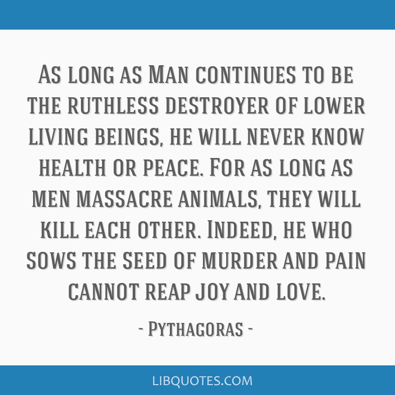 Do not permit your children to kill insects; this is the first step on the road to killing a human being. – Pythagoras (attributed)