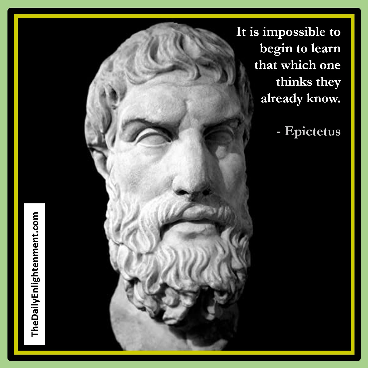 Begin To Learn moonpointer September 10, 2021 Leave a Comment on Begin To Learn Posted in Quotes It is impossible to begin to learn that which one thinks they already know. — Epictetus