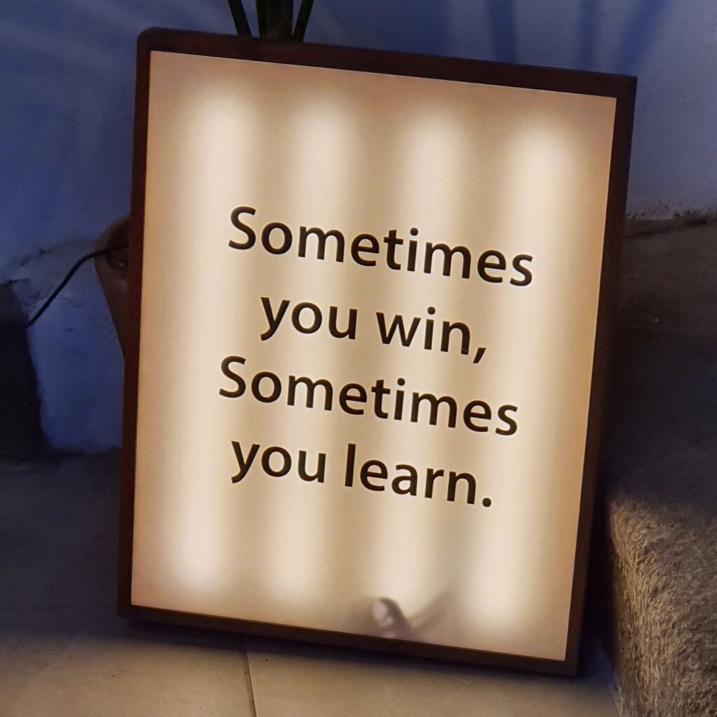 How To Always Win Karma November 3, 2023 Leave a Comment on How To Always Win Posted in Quotes _ How To Always Win Some say,‘Sometimes you win;sometimes you learn.’ I say,‘Every time you learn,every time you win.’
