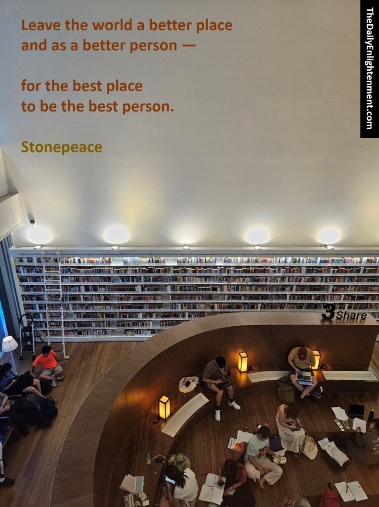 Better To Best (Stonepeace) moonpointer August 5, 2024 Leave a Comment on Better To Best (Stonepeace) Posted in Photojournal __ Better To Best Leave the world a better placeand as a better person —for the best placeto be the best person. Stonepeace