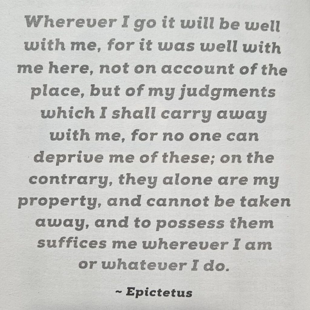 Wherever I go it will be well with me, for it was well with me here, not on account of the place, but of my judgments which I carry away with me, for no one can deprive me of these; on the contrary, they alone are my property, and cannot be taken away, and to possess them suffices me wherever I am or whatever I do.