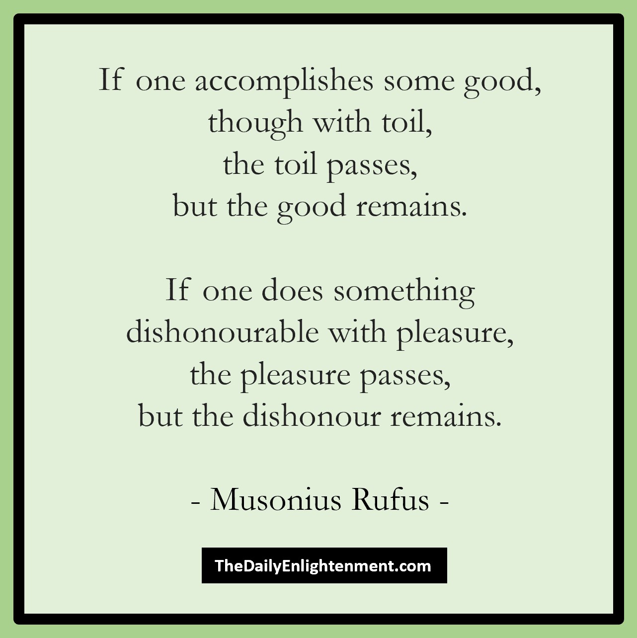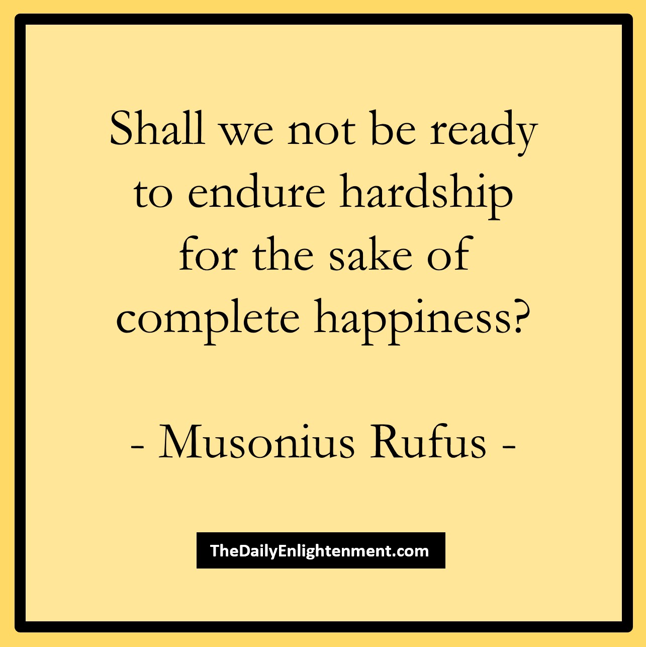 Shall we not be readyto endure hardshipfor the sake ofcomplete happiness? — Musonius Rufus(That One Should Disdain Hardships)