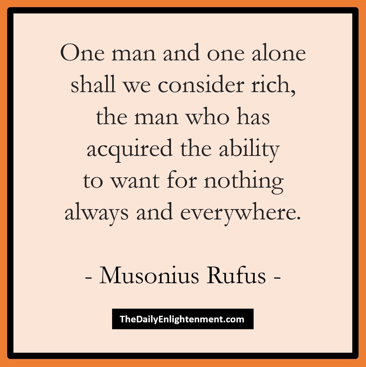 We do not feelthe lack of many thingsunless we wishto live luxuriously. — Musonius Rufus(Exile Is Not An Evil)