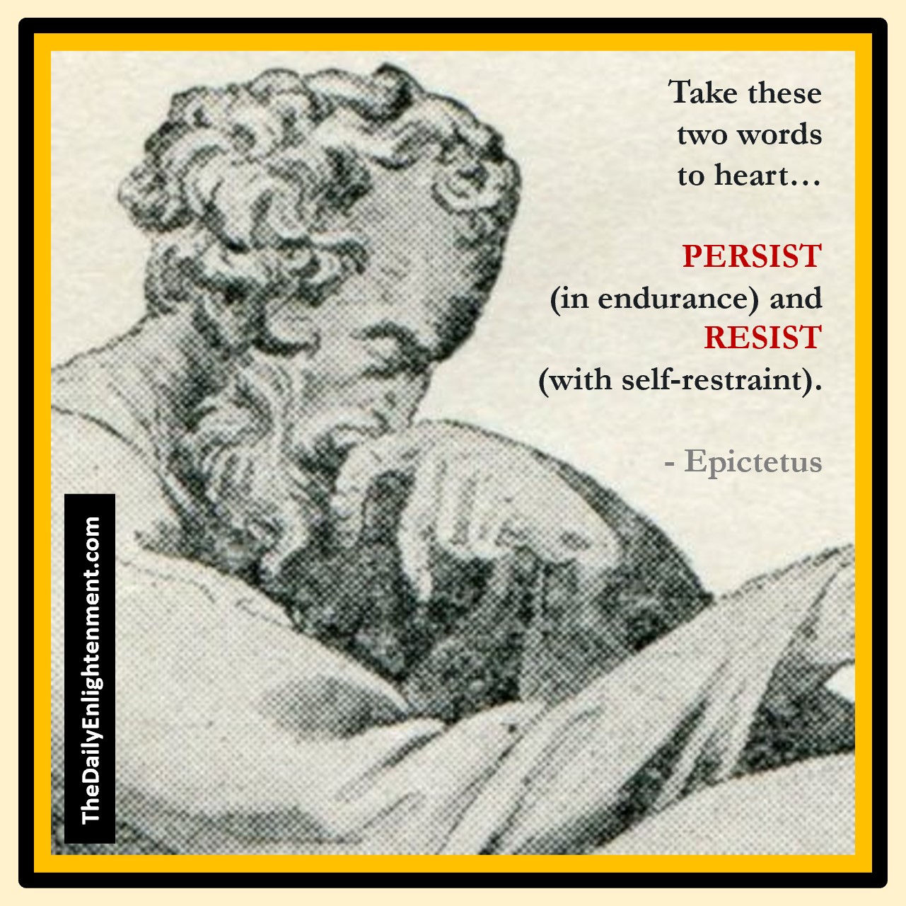 Take these two words to heart… PERSIST (in endurance) and RESIST (with self-restraint). — Epictetus