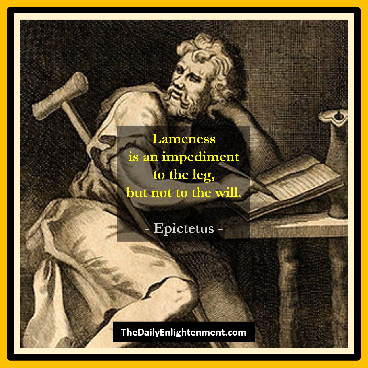 Lameness is an impediment to the leg, but not to the will. — Epictetus